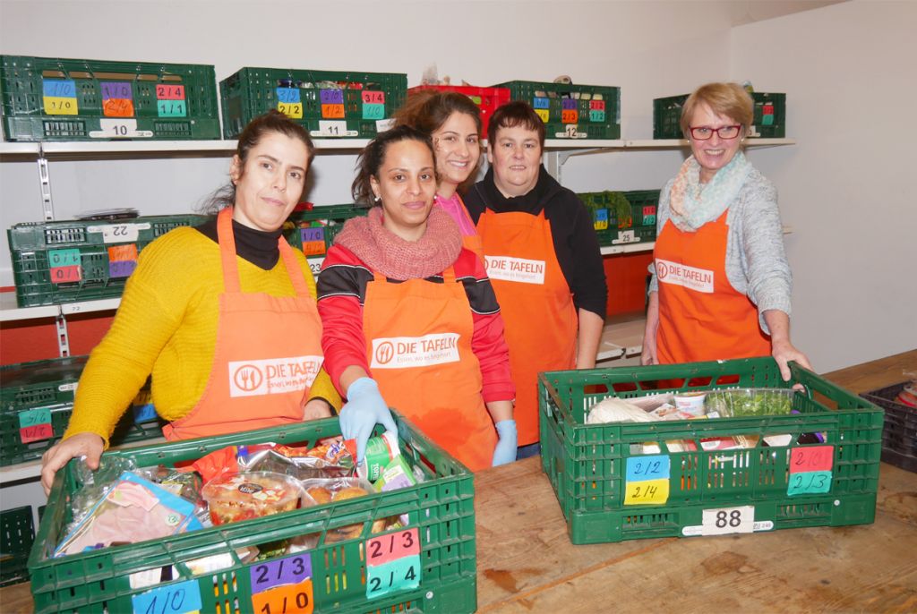 Bild 1: Um die 90 Ehrenamtliche wechseln sich beim Abholen, Sortieren und Verteilen von Lebensmitteln für die Tafel ab. Neben Menschen im Ruhestand helfen auch viele Geflüchtete mit. Die Ausgabestelle für das gesamte Einzugsgebiet ist in Linz in der Brunnengasse. Helfer werden immer wieder gesucht.