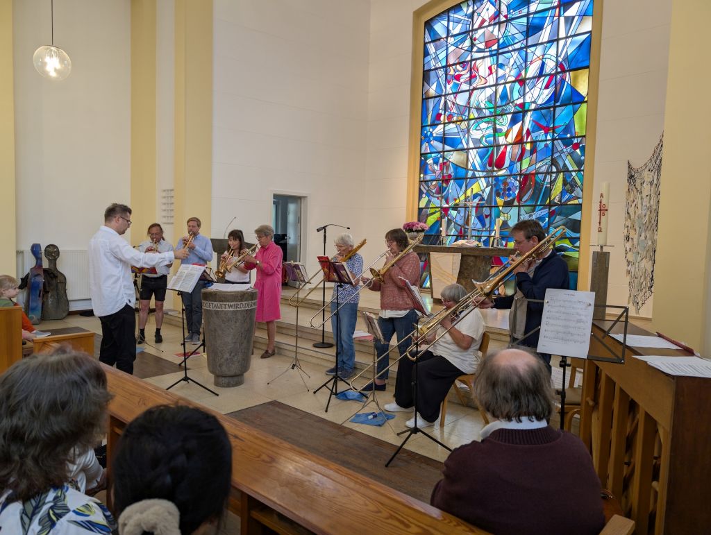 Das diesjährige Gemeindefest in Bad Hönningen begann mit einer kleinen Planänderung: Aufgrund der unsicheren Wettervorhersage wurde das ursprünglich geplante Open-Air-Programm kurzerhand angepasst. Den Auftakt bildete ein fröhlicher Familiengottesdienst in der Kirche, der mit vielen kreativen Impulsen und Beiträgen aus der Gemeinde gestaltet wurde. Im Mittelpunkt stand dabei die Entstehung des „Trinitatis-Gemeinde-Netzwerks“ – ein Gemeinschaftsprojekt, zu dem jeder Besucher etwas beigetragen hat. Aus vielen Einzelteilen entstand ein großes, buntes Netz gelebter Verbundenheit. Das Netzwerk ist aktuell in der Kirche Bad Hönningen ausgestellt und lädt dazu ein, Gemeinschaft sichtbar zu erleben. Im Anschluss war kulinarisch war für jeden etwas dabei: Neben Leckerem vom Grill lockte der internationale Kochtopf mit Köstlichkeiten aus aller Welt, und natürlich fehlten auch Kaffee und ein reichhaltiges Kuchenbuffet nicht. Auch für die kleinen Gäste war bestens gesorgt: Draußen sorgten eine Hüpfburg, Kinderschminken und Riesenseifenblasen für leuchtende Augen und ausgelassenes Lachen. In der Bibliothek lud das Bilderbuchkino die Kids zu einer kleinen Auszeit ein. Den musikalischen Abschluss gestaltete der Singkreis, der Kinderchor und der Posaunenchor gemeinsam. Mit bekannten Liedern und mitreißenden Klängen klang der Tag in fröhlicher Atmosphäre aus. Trotz der kurzfristigen Änderungen hat das Gemeindefest wieder einmal gezeigt: Wo Gemeinschaft gelebt wird, wird es warm – ganz unabhängig vom Wetter. Ein herzliches Dankeschön an alle Helferinnen und Helfer, Mitwirkenden und Gäste, die diesen Tag so besonders gemacht haben!