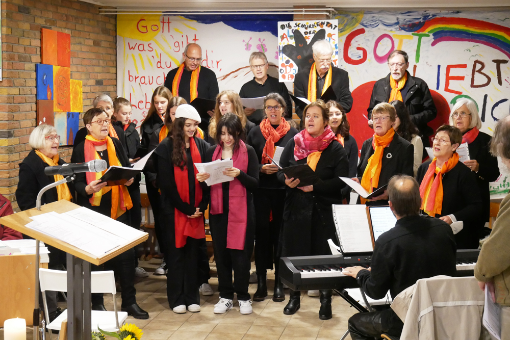 Neu anfangen mit dem Singen: Unter diesem Motto kam an drei Montagen im September ein „Gospel-Projektchor“ zusammen, der die eingeübten Lieder (keineswegs anfängergleich, aber dennoch neu) bei dem „etwas anderen ökumenischen Gottesdienst“ zum besten gab. Fast um die Hälfte durch Krankheit und Quarantäne dezimiert, konnten die „übrigen“ Sänger die Gottesdienstbesucher dennoch mitreißen.