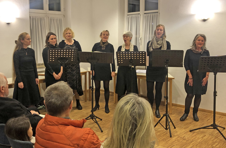 Als die Stühle im Katharinenhof knapp wurden, wichen die Zuschauer auf die Tische aus – und haben es nicht bereut. Das miauende Katzenduett von Rossini wurde zu einem heiteren Septett ummiaut.
