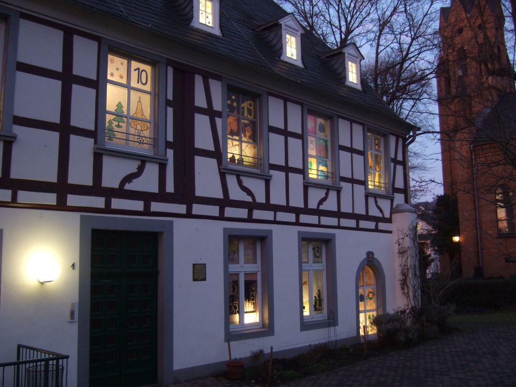 Alle, die im Advent am Gemeindehaus vorbei gehen, geraten ins Staunen, besonders spätnachmittags und abends, wenn der Katharinenhof von Innen ausgeleuchtet wird!
