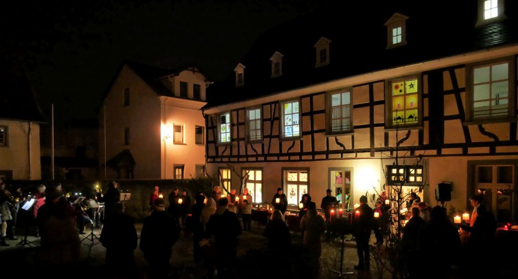 Wir treffen uns wie in den vergangenen Jahren draußen vor dem Gemeindehaus. Holzfeuerkörbe knistern, spezielle Liederlaternen ermöglichen das Mitsingen der Adventslieder, die von unserem Posaunenchor angestimmt werden. Im Kerzenschein singen wir zusammen mit unserem Singkreis und hören eine Geschichte zum Advent.